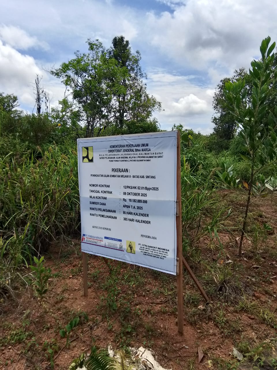 Tomenusantara.top.Melawi, Kalbar — Proyek peningkatan ruas Jalan Jembatan Melawi II – Batas Kabupaten Sintang kembali menjadi perhatian publik. Meski kontrak telah berjalan sejak 8 Oktober 2025, sejumlah pekerjaan penting di lapangan masih belum terlihat penyelesaiannya sesuai jadwal.
