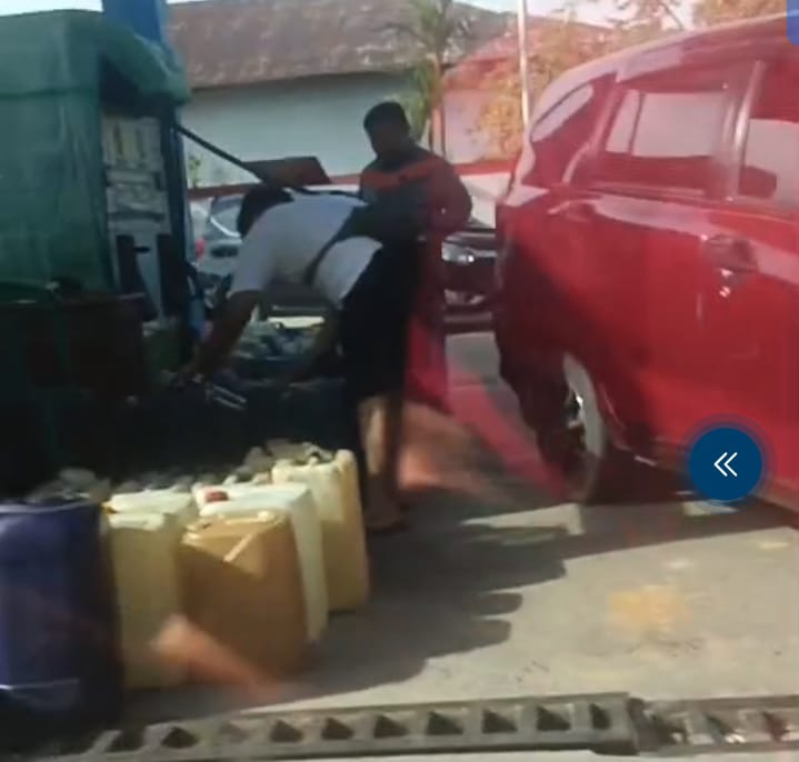 Hari ini kita dengan jelas memandang, ratusan jirigen yang berderet disamping nozele, untuk mengisi Pertalite sehingga mobil umum terpaksa mengisi Pertamax, tutupnya